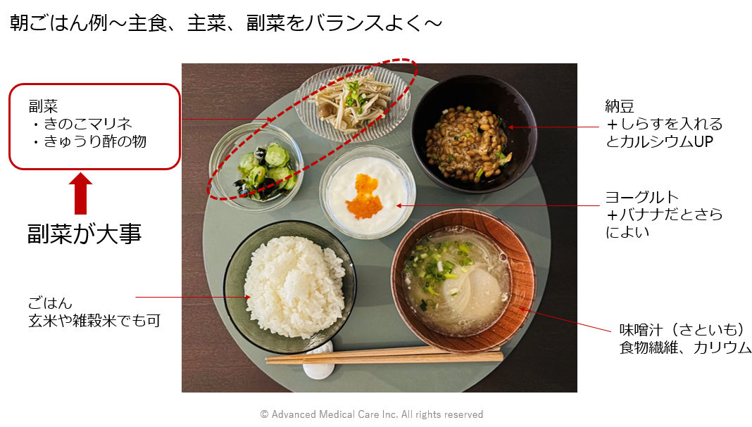 また、自身の朝食例を示しながら、心と体の調和をめざす“心身美食レシピ”も紹介しました。